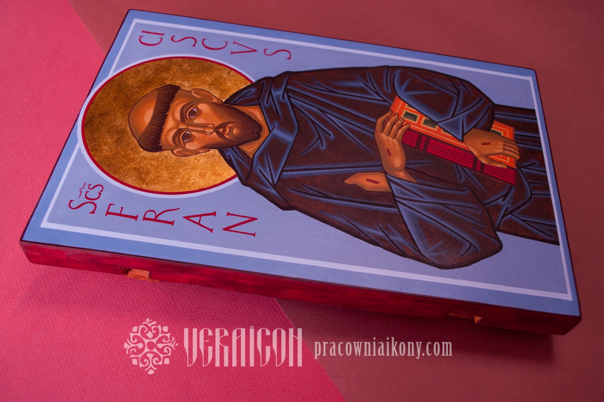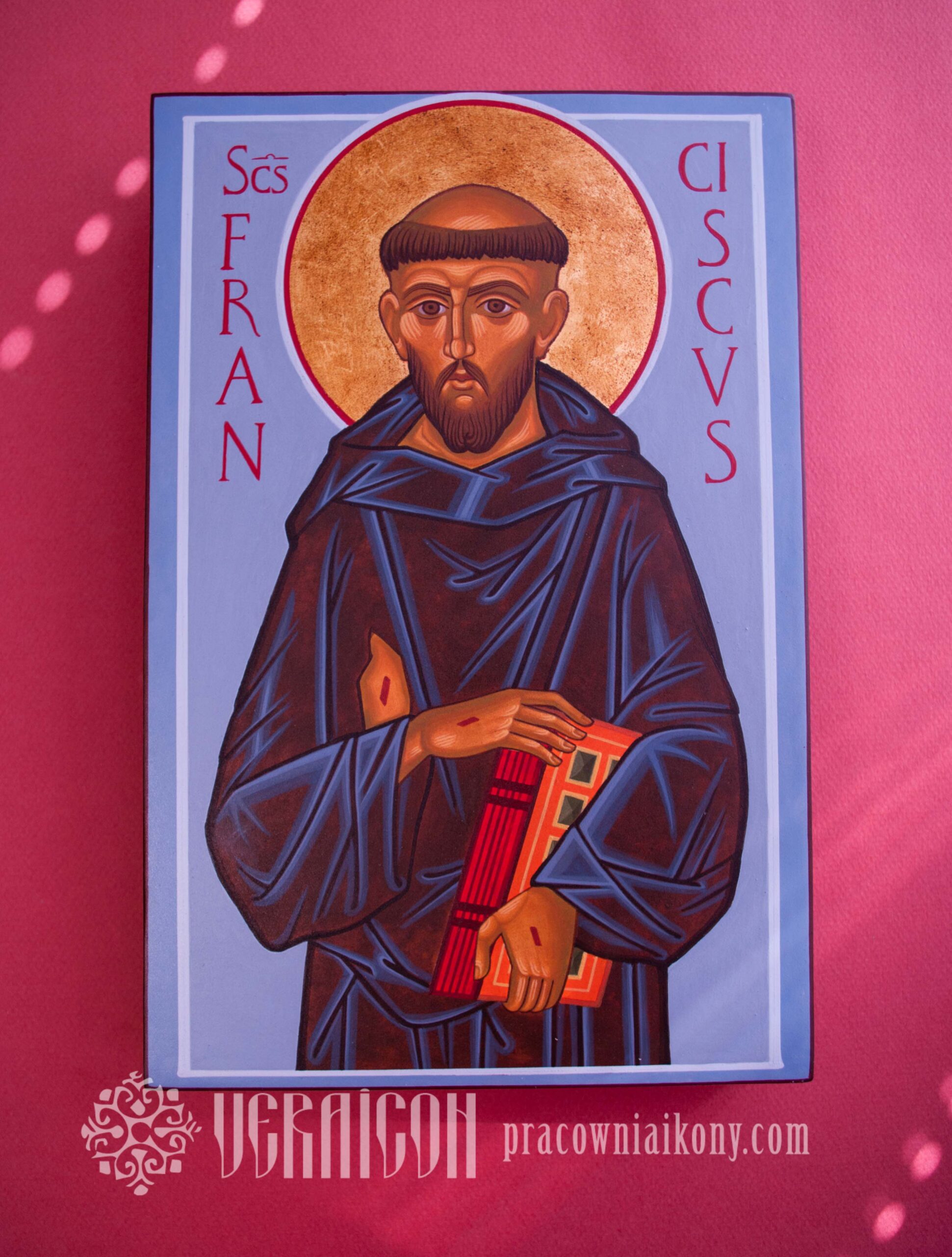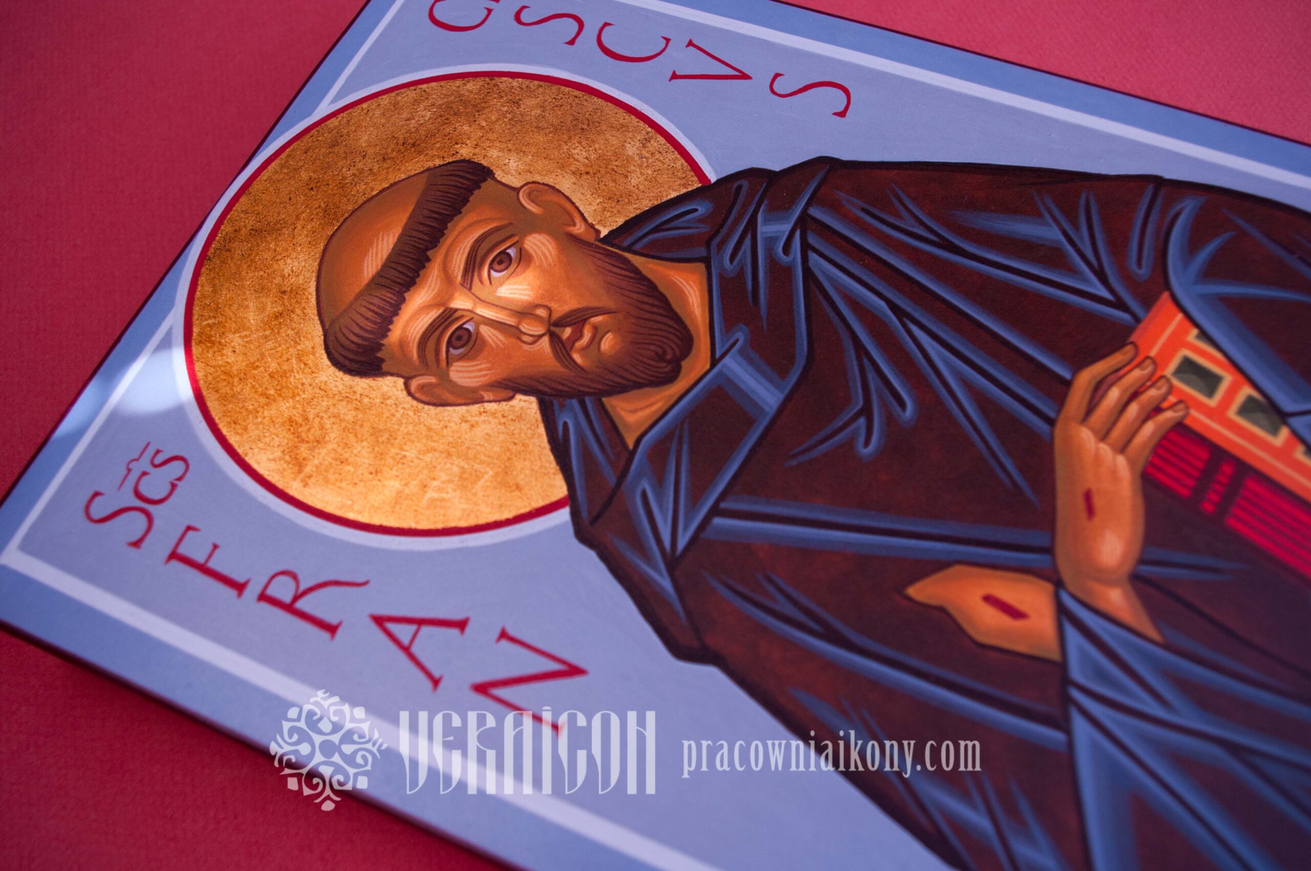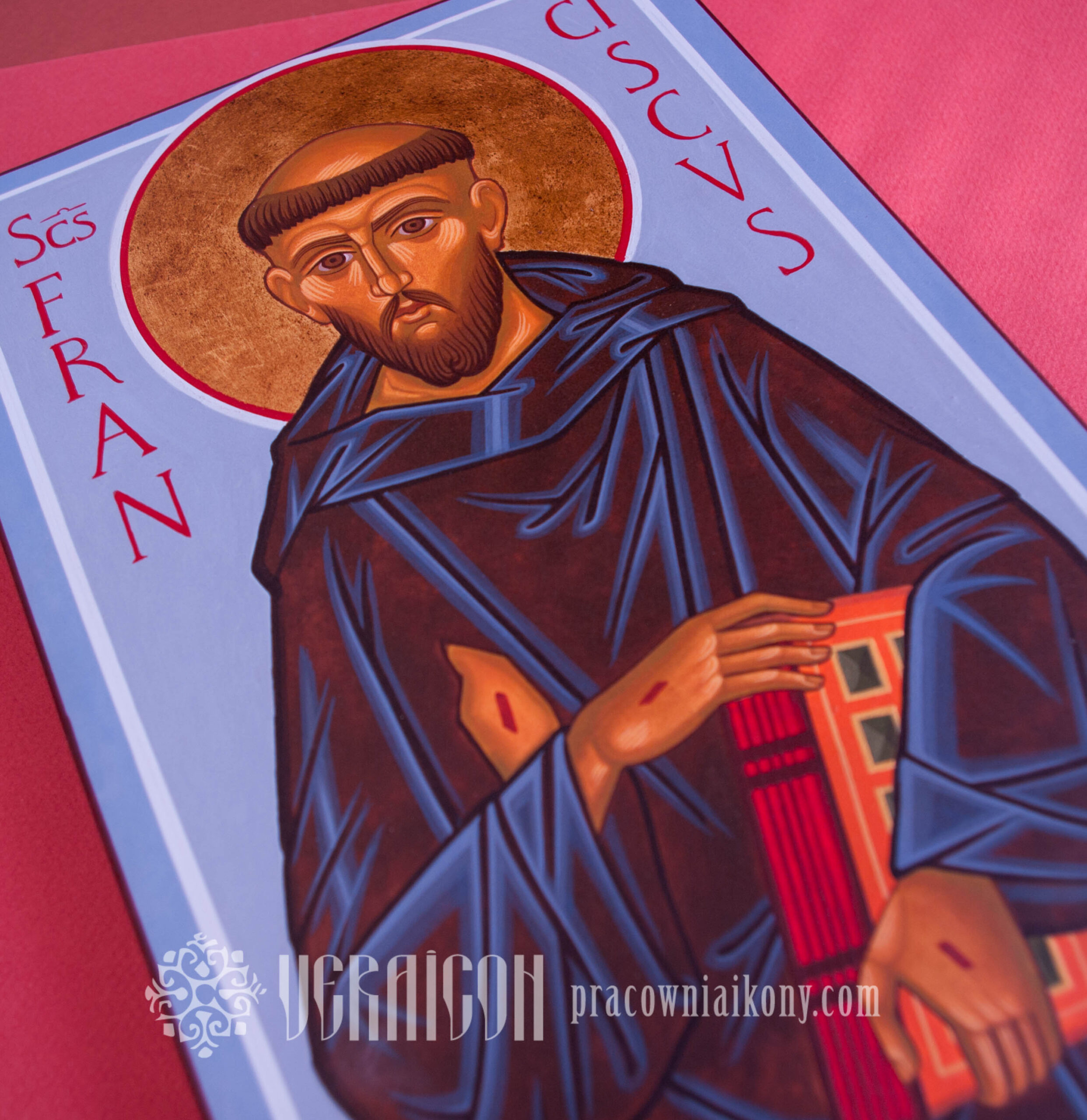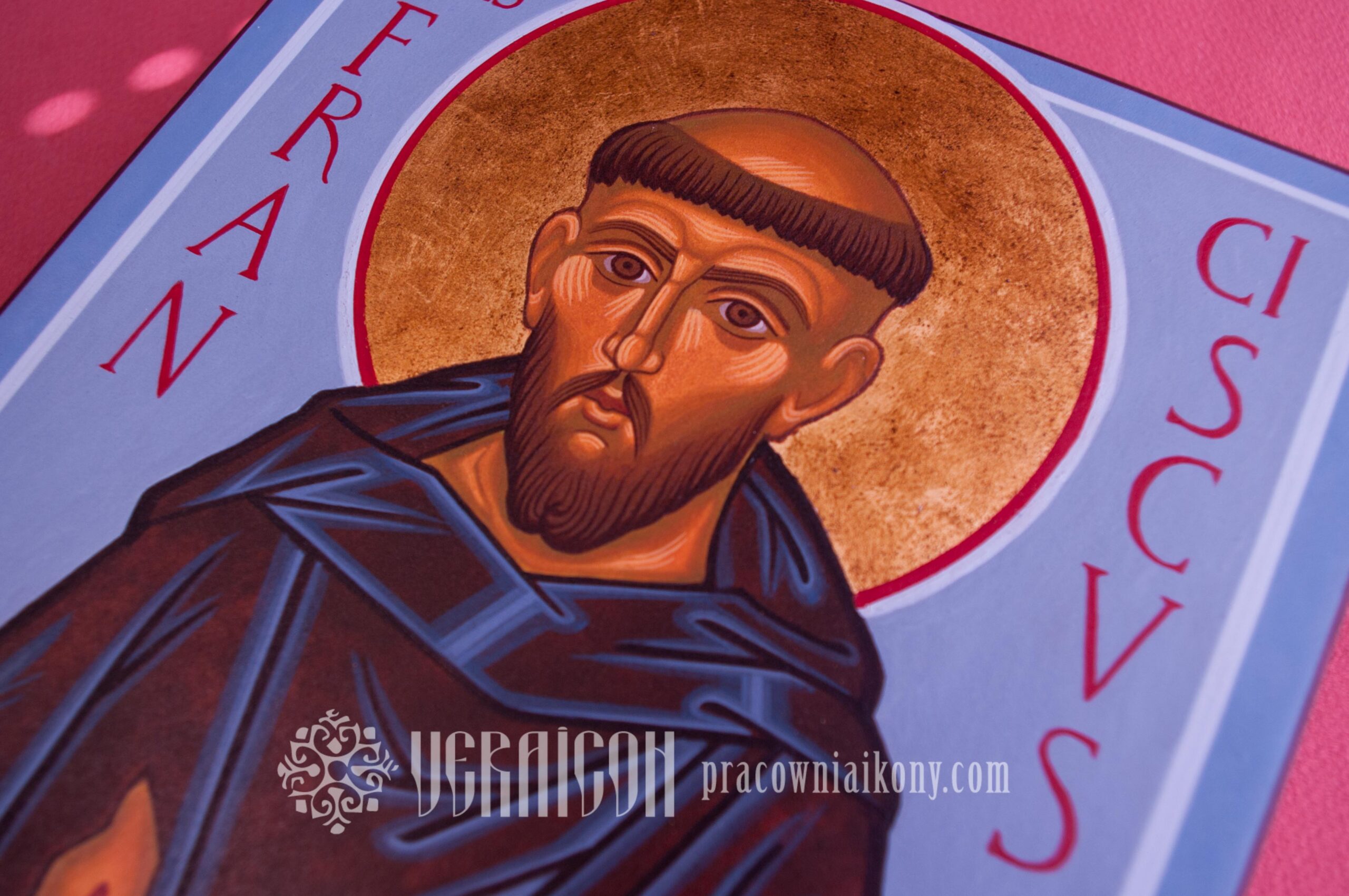 Istnieje wiele przedstawień świętego. Przyjęto, że jedynym wiarygodnym wizerunkiem Biedaczyny z Asyżu jest jego portret, który namalował Cimabue na fresku w Bazylice św. Franciszka. Przy pracy nad swoją ikoną inspirowałam się kilkoma z nich przetwarzając wzorce w sposób, który pozwoli najpełniej oddać istotę duchowości franciszkańskiej.