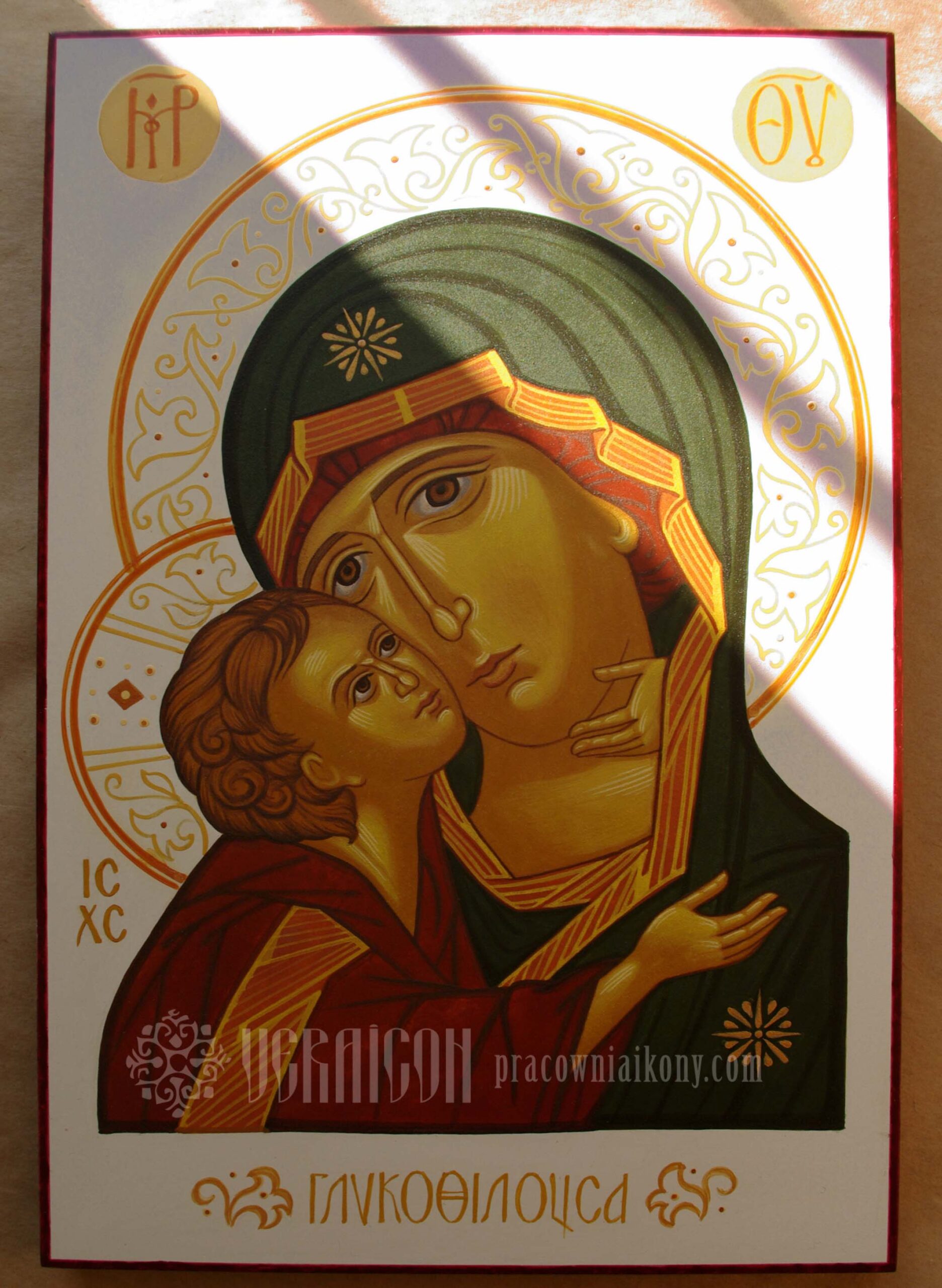 This iconographic motif is known as Eleusa – “The Tender” – or Glykophilousa, meaning “Sweetly Loving.” One of the most famous and oldest examples of this type is the icon from Vladimir (or actually from Vyshgorod) dating back to the 12th century. It is especially venerated in the East, and due to the miracles attributed to it, the Feast of the Vladimir Icon of the Mother of God is celebrated on June 23.