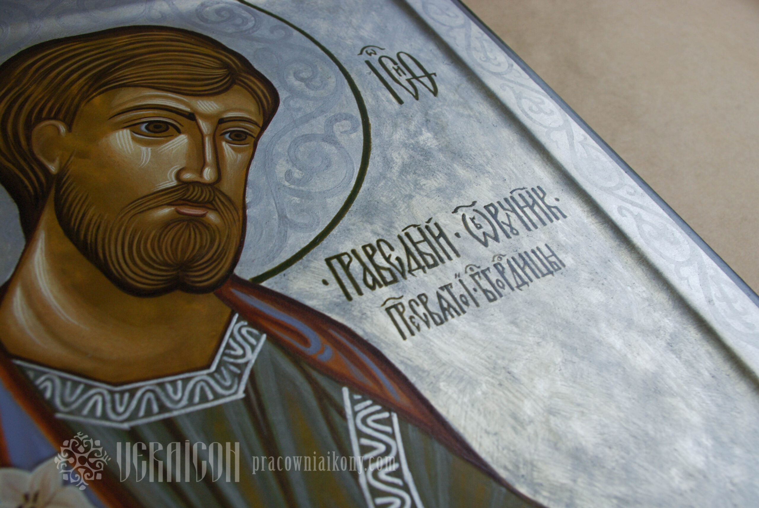 The icon depicts Saint Alexius the Confessor (his name in Greek means “Defender”), known from medieval legends recounting his life. Born into a wealthy Roman family, he fled his home to live as a beggar. He led an ascetic life and died unrecognized at the doorstep of his own house.