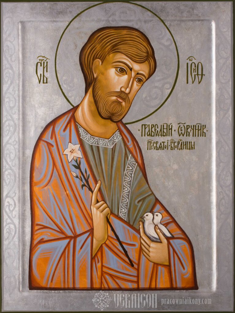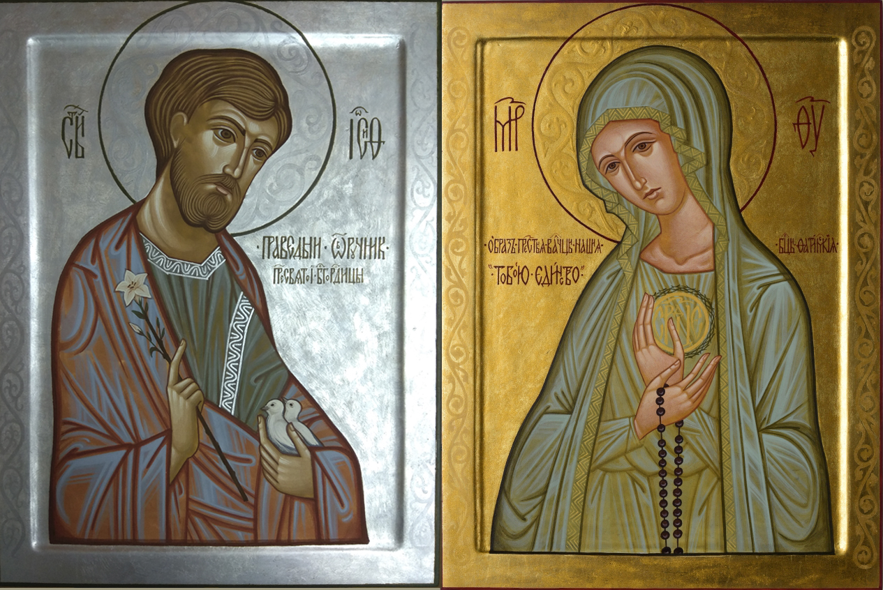 The icon of St. Joseph was created as a complement to the icon of Our Lady of Fatima, together forming a harmonious compositional ensemble.