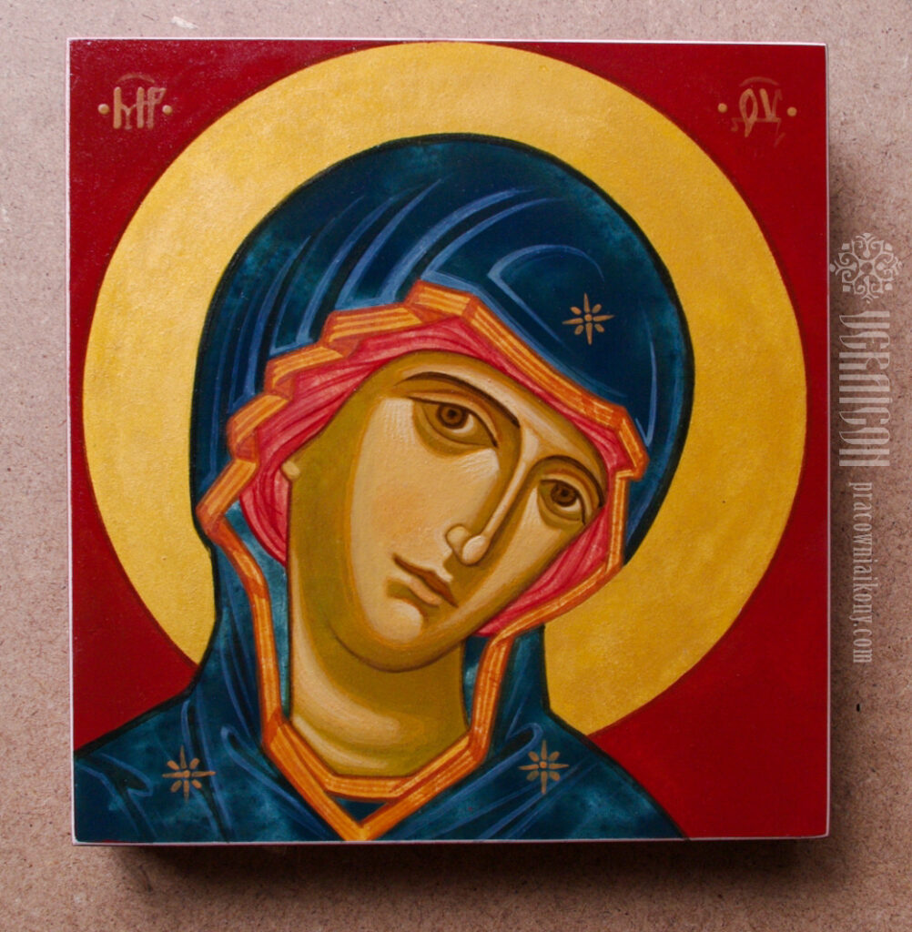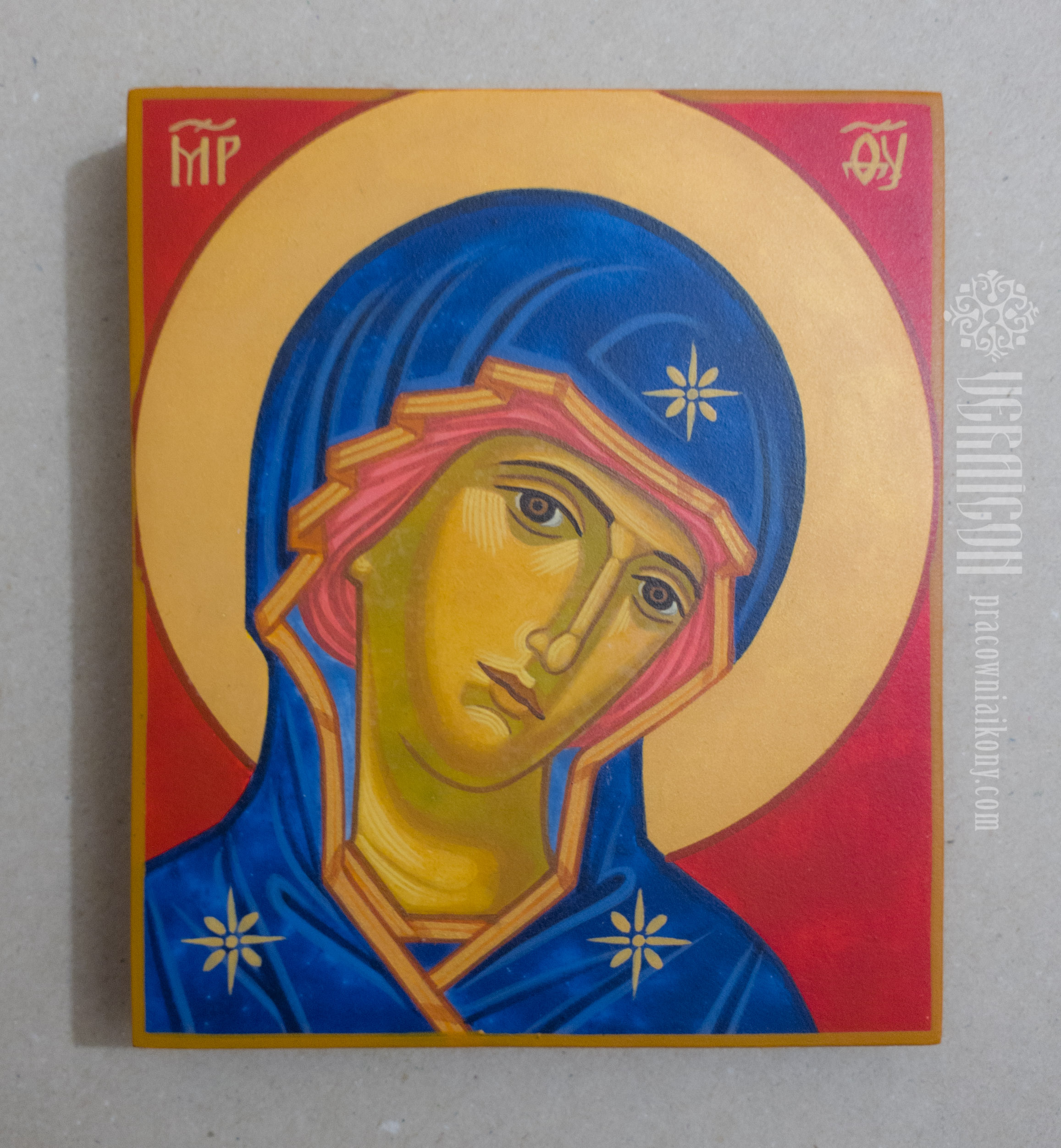 Tempera żółtkowa na desce lipowej, złoto płatkowe na pulmencie. Rozmiar: 20×25 cm, 2016 r.